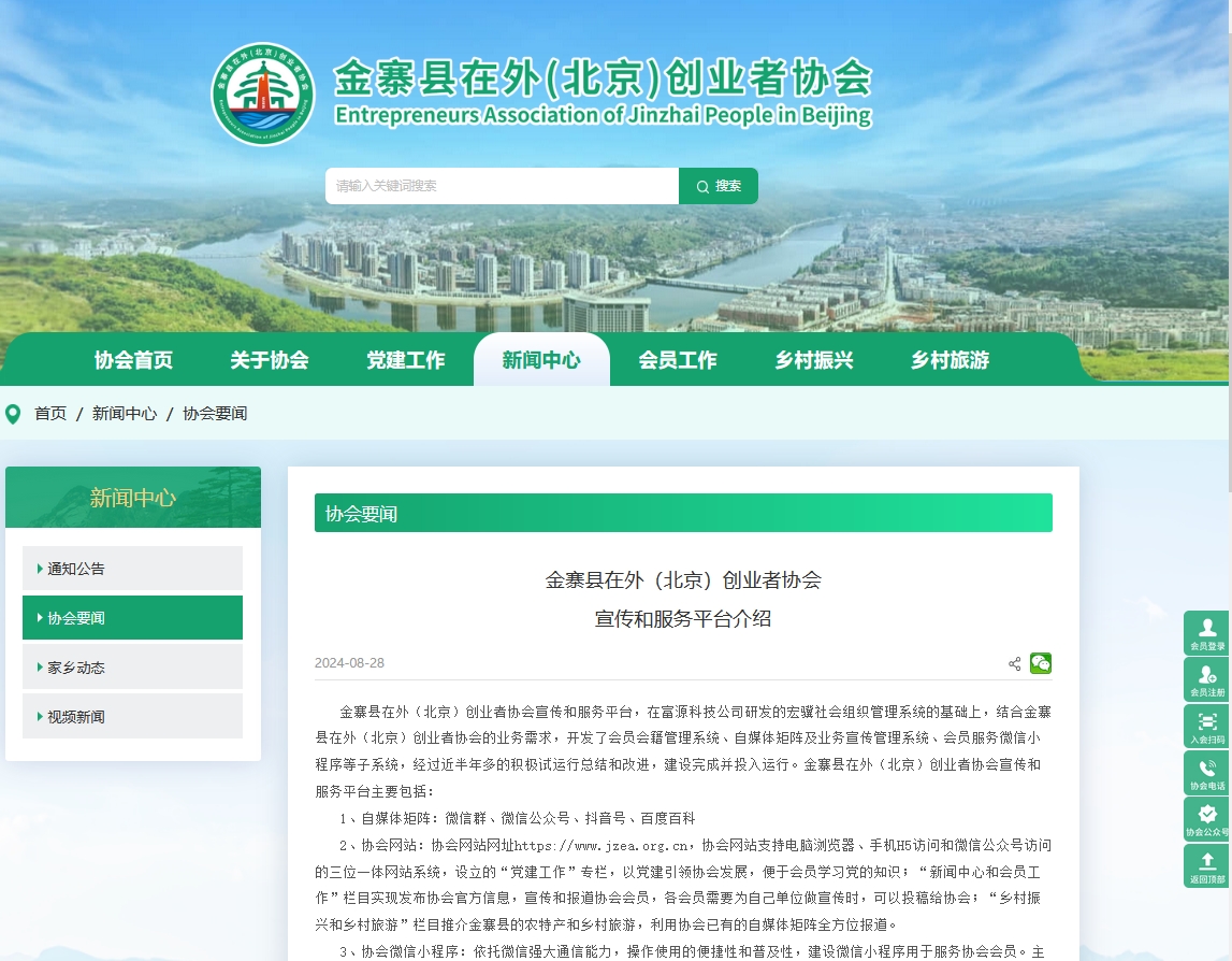 金寨縣在外(北京)創(chuàng)業(yè)者協(xié)會(huì)宣傳和服務(wù)平臺(tái),在富源科技公司研發(fā)的宏驥社會(huì)組織管理系統(tǒng)的基礎(chǔ)上,結(jié)合金寨縣在外(北京)創(chuàng)業(yè)者協(xié)會(huì)的業(yè)務(wù)需求,開(kāi)...